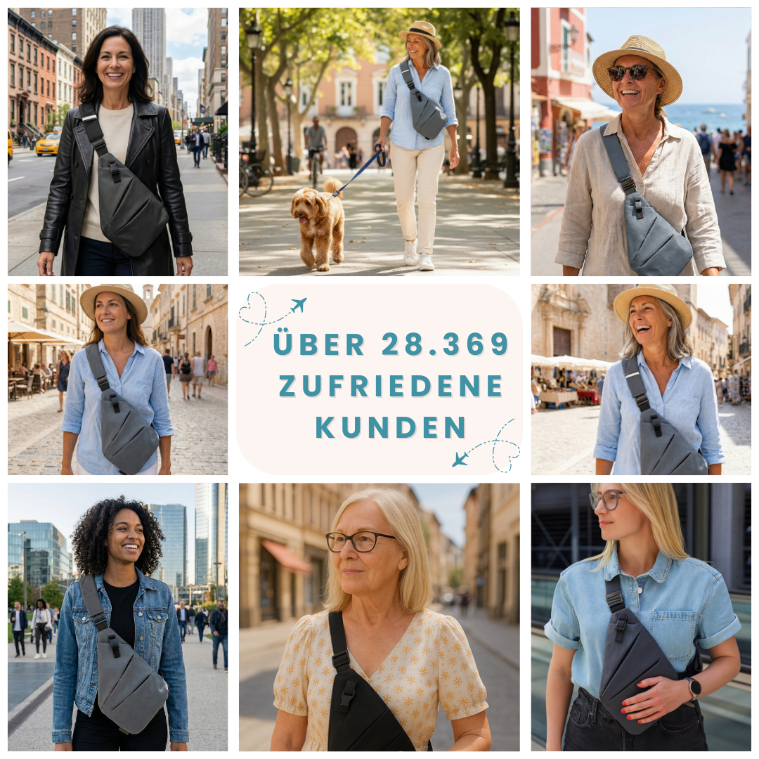 Ich nutze die Tasche jetzt seit einigen Wochen im Alltag und auf Reisen – super leicht, unauffällig und wirklich sicher. Man merkt die Qualität sofort.